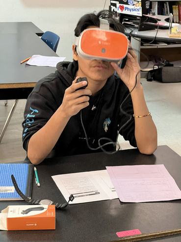 In physics students used the headsets to explore the difference between waves of sound and light, and then looked into the production of electricity by exploring several types of power plants from nuclear, fossil fuel, hydroelectric, tidal, and solar.
